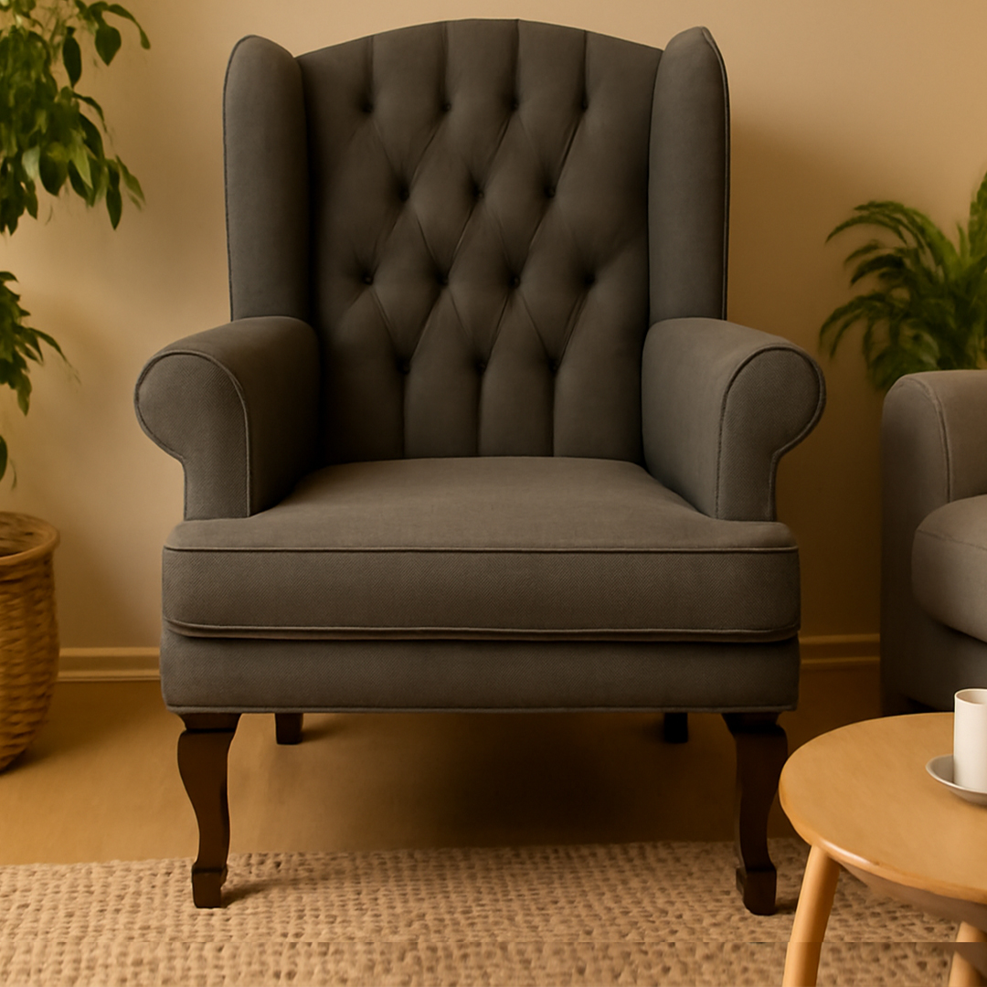 Dale a tu espacio un aire de sofisticación con nuestro sillón vintage individual. Su diseño inspirado en épocas clásicas, con detalles capitoneados y acabados refinados, lo convierte en una pieza única que resalta en cualquier decoración. Ideal para crear un rincón de lectura o añadir un toque especial a tu sala de estar.